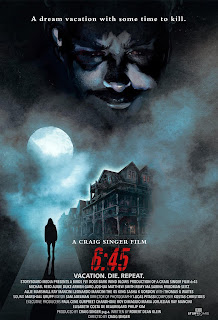 Honestly, I was looking forward to 6:45. Singer really impressed me with Dark Ride and Perkins 14. I remember that I wasn't alone with Perkins 14 hit store shelves. I was an active member of the UHM message boards and it was a common to see conversations about this one pop up for weeks after the film's release. I was hoping that 6:45 would deliver the brutality that his previous films did while utilizing the fantastic actor that Michael Reed is. Sadly, the film missed it's mark with me but there was some enjoyable aspects of it. The acting in this one is absolutely fantastic. Duke and Reed are phenomenal together. I went through their filmography to see if this was their first time working together and as far as I can tell it is. However, they have some seriously impressive on screen chemistry. They were very comfortable with each other and their dialogue exchange feels very genuine. I know I've praised Reed in the past for his performances and he continues to impress me. With that being said, Duke is just as enjoyable in her role. The supporting cast is impressive as well but Reed and Duke's characters are the center of the story. The story for this one is one of several horror films that borrowed the premise from the classic comedy Groundhog's Day. I fucking loved Happy Death Day and it's sequel so this type of premise can be very effective in a horror film. However, this one just doesn't set up an intriguing premise like some of the other films that use this same plot device. I could really get behind a young couple getting murdered and murdered again as they try to uncover the reason for their continuing murder but the way 6:45 approaches the story makes it more focused on how the character of Bobby handles being stuck on repeat with the horror taking the back seat. If it was more focused on the murders and who caused the original while tying it to them then it would have been a lot more entertaining than the psychological twist it goes. I found it to be very underwhelming. Finally, the film doesn't shy away from the blood which is what I expected from Singer. We get some seriously bloody death but they are mostly the same over and over again. We get some great practical effects for the kill but the repetitiveness of it takes the impact away from the viewer. Overall, 6:45 could have been another great horror release from filmmaker Craig Singer but it struggles to find it's own footing. It falls victim to it's own premise where the repeating storyline becomes repetitive. It has a great cast and solid deaths but it's one I can't recommend.